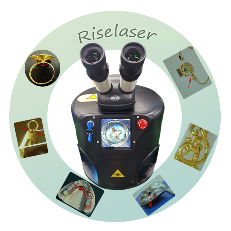 Saldatore del laser dei gioielli ampiamente usato nell'aviazione, nello spazio aereo, nei prodotti di sport, in gioielli, nella testa di golf, nella protesi dentaria di titanio medica, dello strumento della lega, in strumento, nell'elettronica, in macchinario, in automobile, ecc, particolarmente per la perforazione dell'oro e dei gioielli d'argento, la saldatura a punti, la riparazione, l'intarsio e la saldatura dell'artiglio.